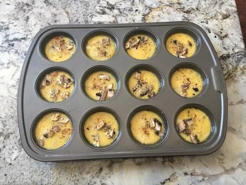 Here is a really easy recipe that sets you up for success in the morning. These are mini egg omelets. You can also call them egg muffins but I wouldn't trust a person that said that.